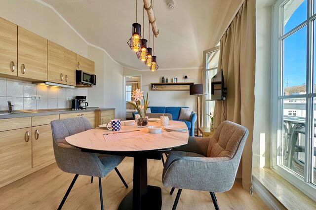 Die Ferienwohnung verfügt über kostenfreies WLAN und die Erstausstattung an Bettwäsche ist inklusive. Das Schlafzimmer verfügt über ein Doppelbett, im Wohnzimmer befindet sich zusätzlich eine Doppelschlafcouch. Darüber hinaus verfügt die Ferienwohnung über ein Bad mit Dusche/WC und Föhn. Die voll ausgestattete, offene Küche mit Mikrowelle, Kaffeemaschine und Toaster lässt keine Wünsche offen. Ein Fernseher inkl. 3 Sky-Sender rundet die Einrichtung ab. Nach einem erlebnisreichen Urlaubstag können Sie auf dem Balkon in Südostlage Platz nehmen. Der Ausblick und die Sitzgruppe sorgen hier für ein wunderbares Urlaubsgefühl. Im Nichtraucher-Apartment ist kein Haustier gestattet.
